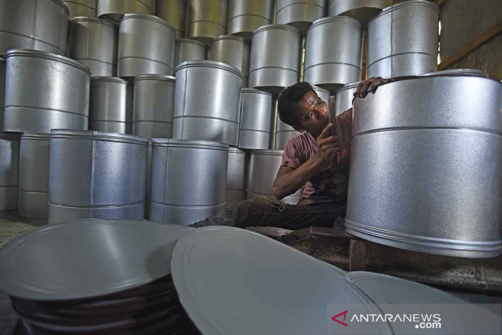 Pekerja menyelesaikan pembuatan dandang di Sentra Produksi Alat Rumah Tangga "Berkah" di Kampung Citasuk, Ciomas, Serang, Banten, Jumat (6/8/2021). Menkop dan UKM Teten Masduki menyatakan, berdasarkan hasil survei 85 persen responden pelaku Usaha Mikro, Kecil dan Menengah (UMKM) mengaku pada kuartal II 2021 kondisi usaha mereka mulai pulih serta berjalan kembali seperti biasa bahkan 22 persen diantaranya menyebut bisa bangkit kembali setelah sempat berhenti akibat pandemi. ANTARA FOTO/Asep Fathulrahman/rwa.